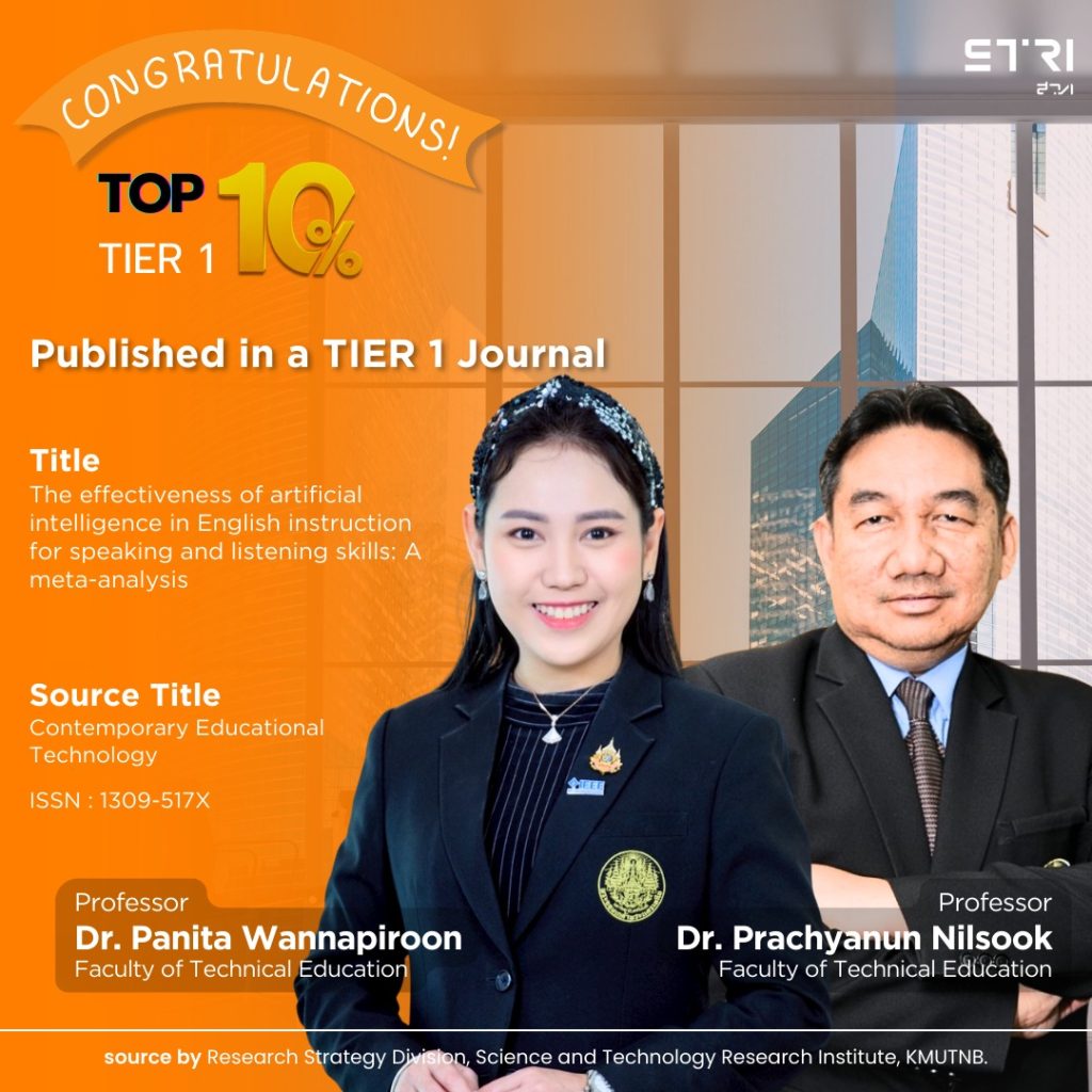 Jantakoon, T., Jantakun, T., Jantakun, K., Pongpanich, W., Pasmala, R., Wannapiroon, P., & Nilsook, P. (2025). The effectiveness of artificial intelligence in English instruction for speaking and listening skills: A meta-analysis. Contemporary Educational Technology, 17(4), ep596. (SCOPUS Q1)